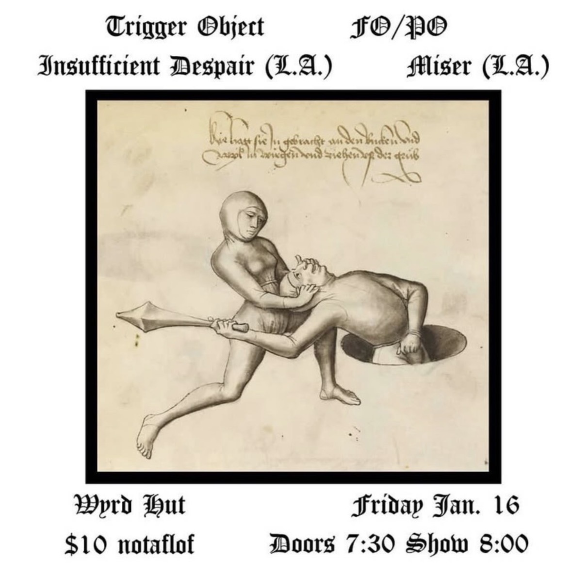 01/16 Fo/Po, Insufficient Despair, Miser Trigger Object - Wyrd Hut - All Ages, 8:00pm, $10 NOTAFLOF