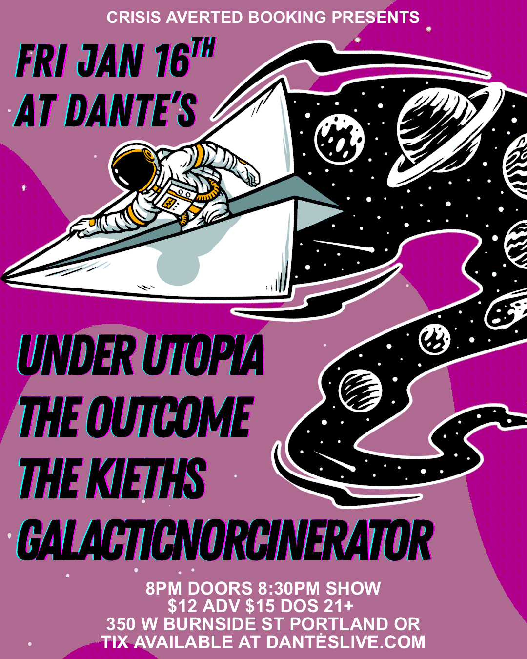 01/16 Under Utopia, The Outcome, The Kieths, Galacticnorcinerator - Dante's - 21+, 8:00pm, $12/$15