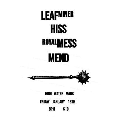 01/16 Leaf Miner, Hiss, Royal Mess, Mend - High Water Mark Lounge - 21+, 8:00pm, $10