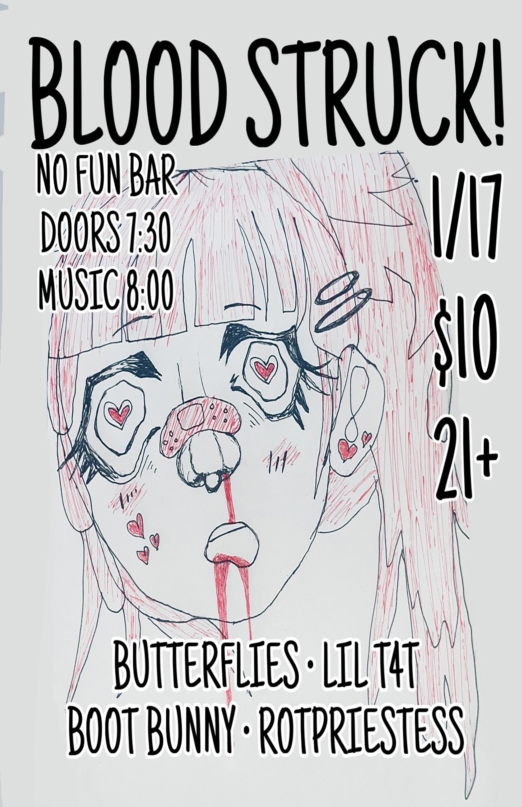 01/17 Bloodstruck! Butterflies, Lil T4T, Boot Bunny, Rotpriestess - No Fun - 21+, 8:00pm, $10