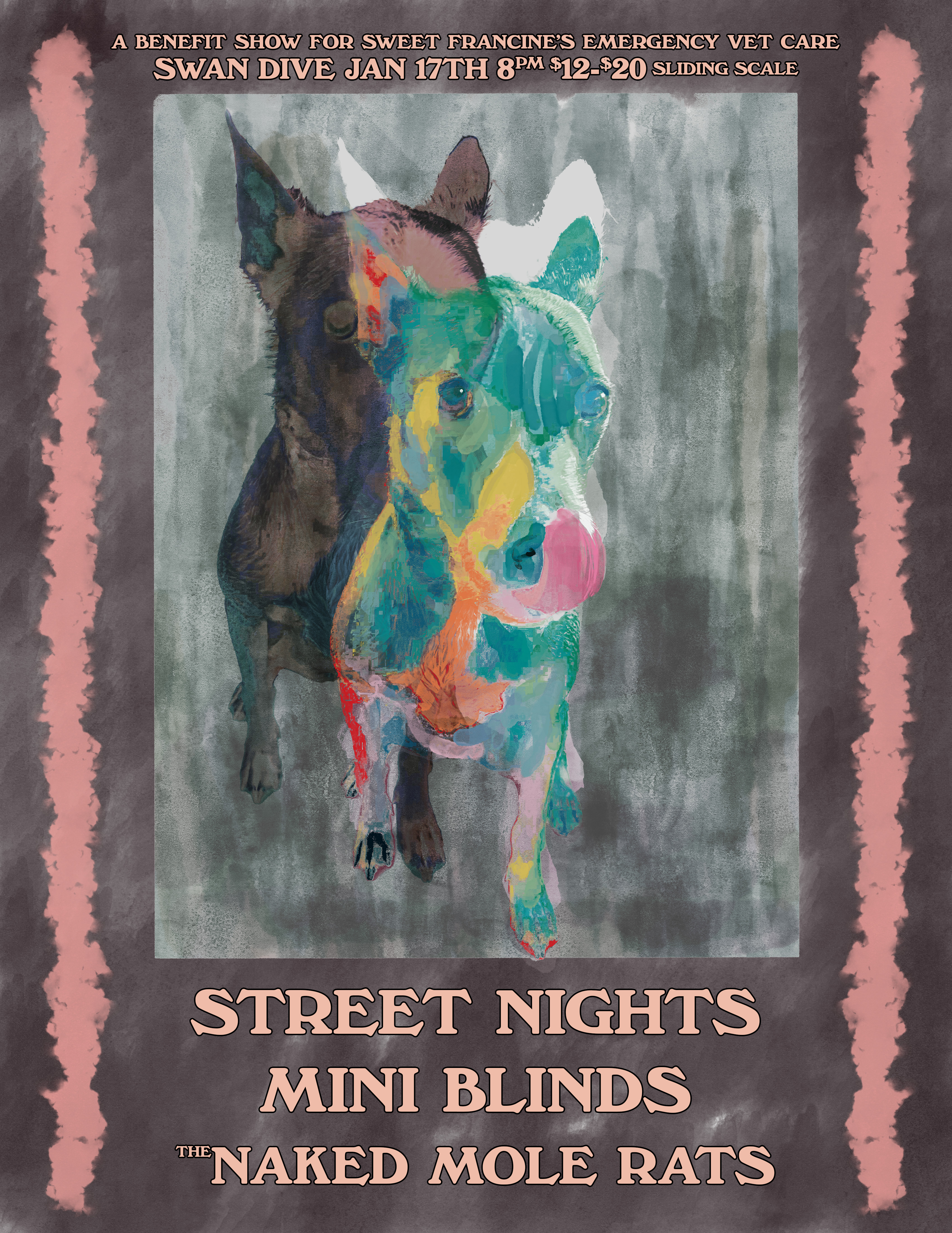 01/17 SWEET DOGGY VET BILL FUNDRAISER with Street Nights, Mini Blinds, The Naked Mole Rats - Swan Dive - 21+, 8:00pm, $12-$20 Sliding Scale