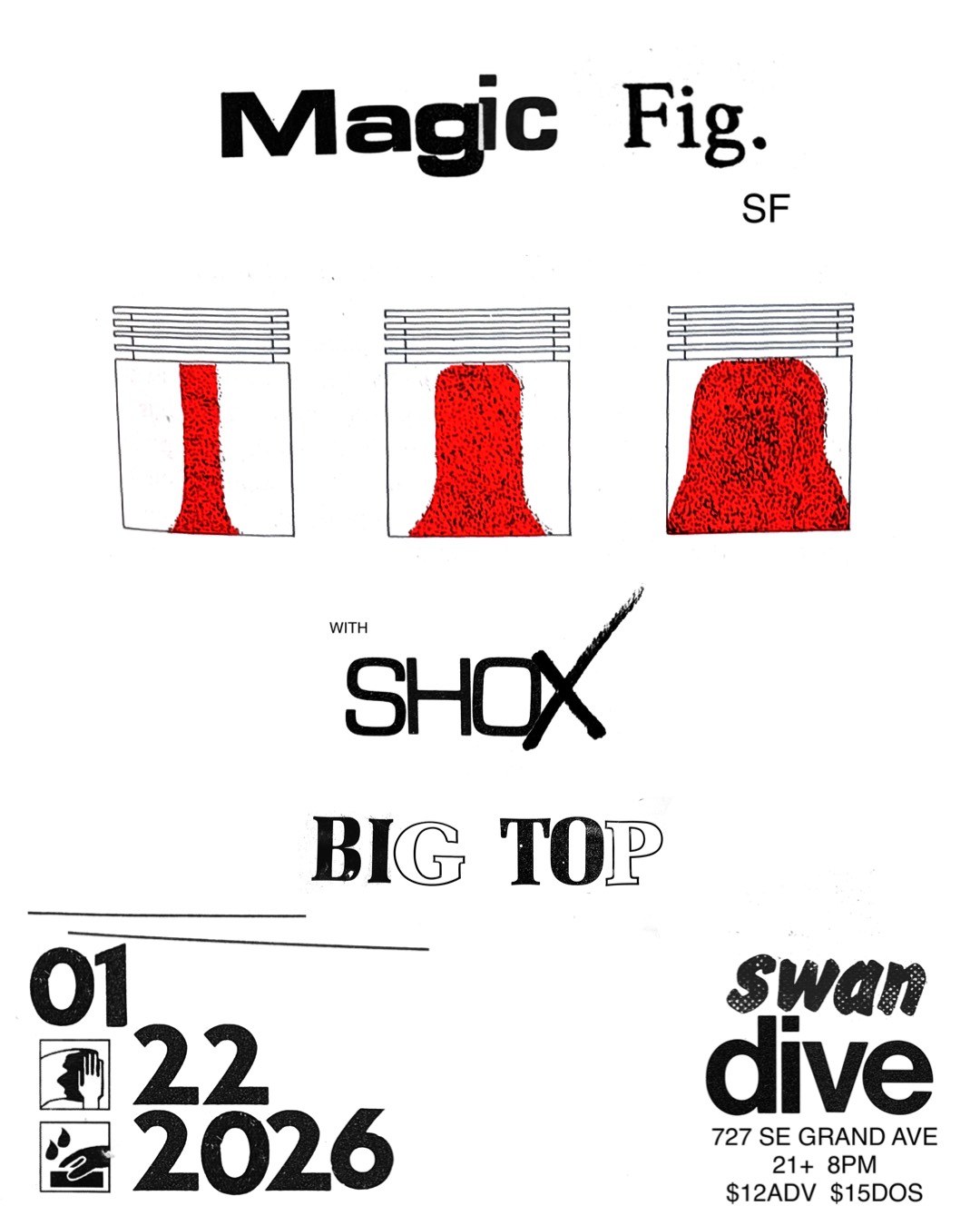 01/22 Magic Fig, Shox, Big Top - Swan Dive - 21+, 8:00pm, $12/$15