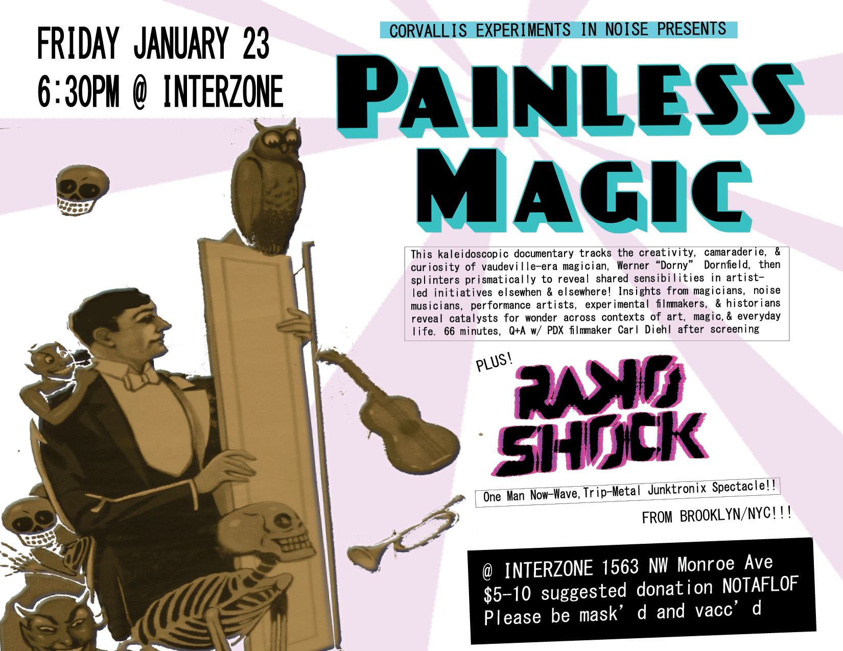 01/23 Painless Magic plus Radio Shock - Interzone - All Ages, 6:30pm, $5-$10 Suggested Donation NOTAFLOF - Masks Reqiured + Vaccines are rad