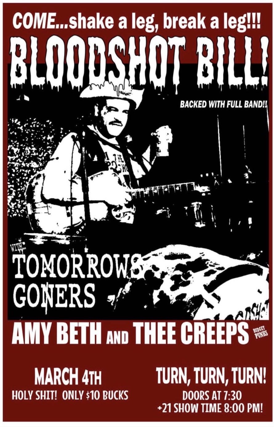 03/04 Bloodshot Bill!, Tomorrows Goners, Amy Beth & the Creeps - Turn! Turn! Turn! - 21+, 8:00pm, $10
