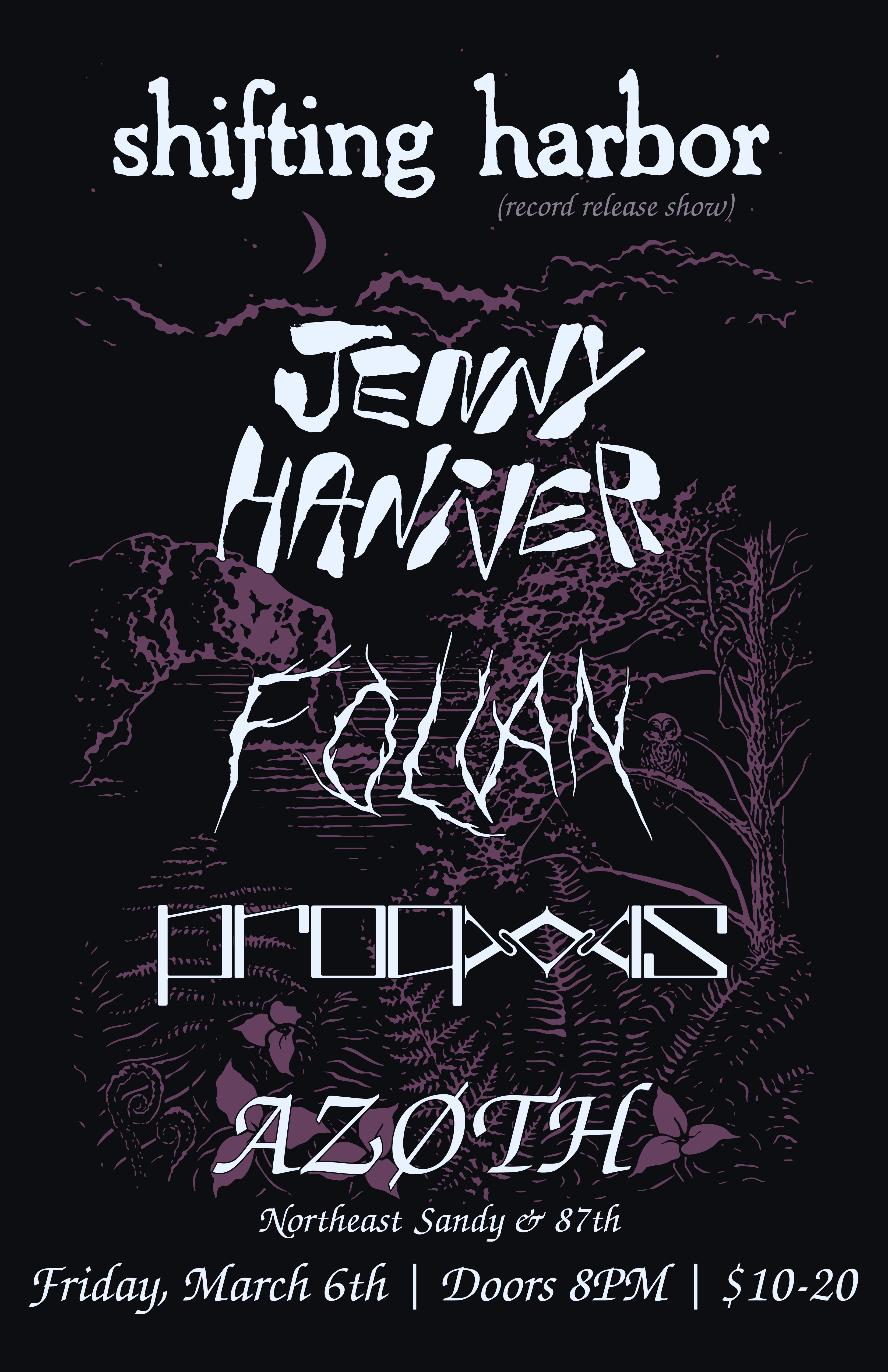 03/06 Shifting Harbor, Jenny Haniver, Folian, Proxis - Azoth - 21+, 8:00pm, $10-$20