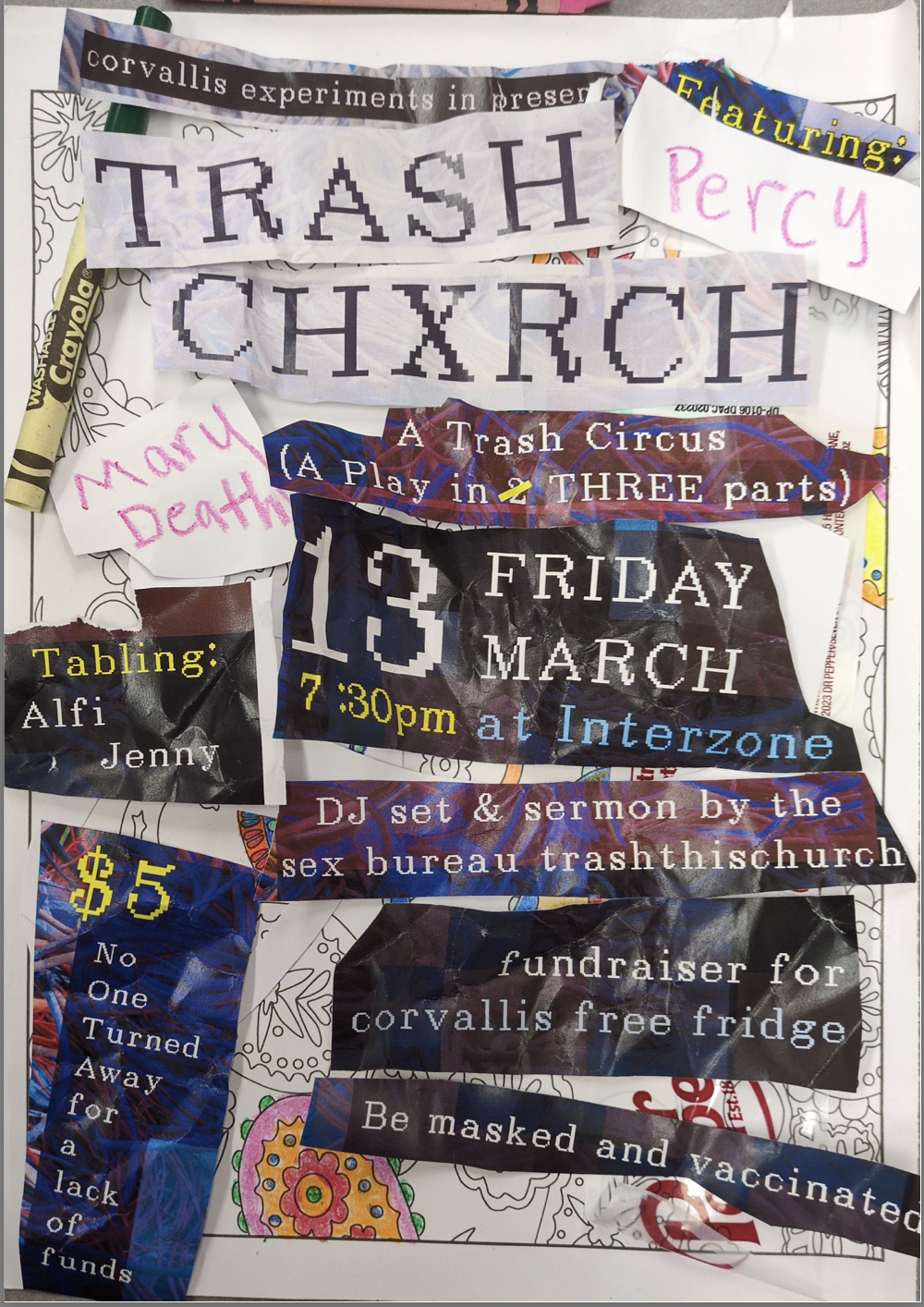 03/13 Trash Chxrch featuring Percy, Mary Death, Alfi Jenny - fundraiser for corvallis free fridge - Interzone - All Ages, 7:30pm, $5 NOTAFLOF