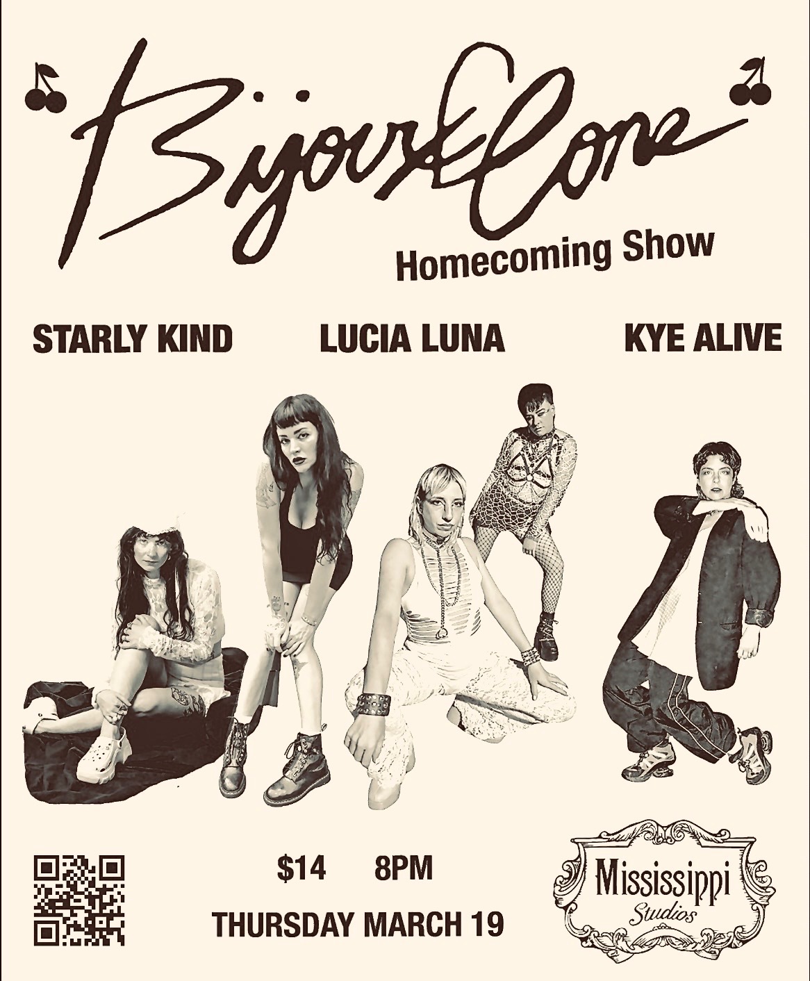 03/19 Bijoux Cone, Starly Kind, Lucia Luna, Kye Alive - Mississippi Studios - 21+, 8:00pm, $14