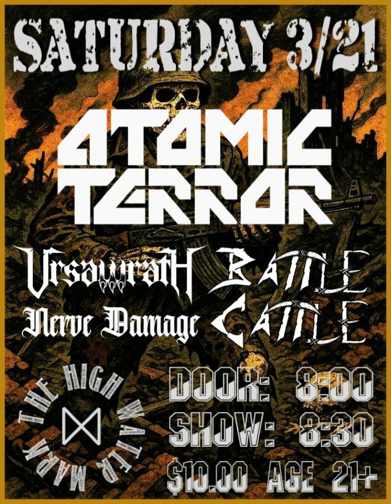 03/21 ATOMIC TERROR, Ursawrath, Nerve Damage, Battle Cattle - High Water Mark - 21+, 8:00pm, $10