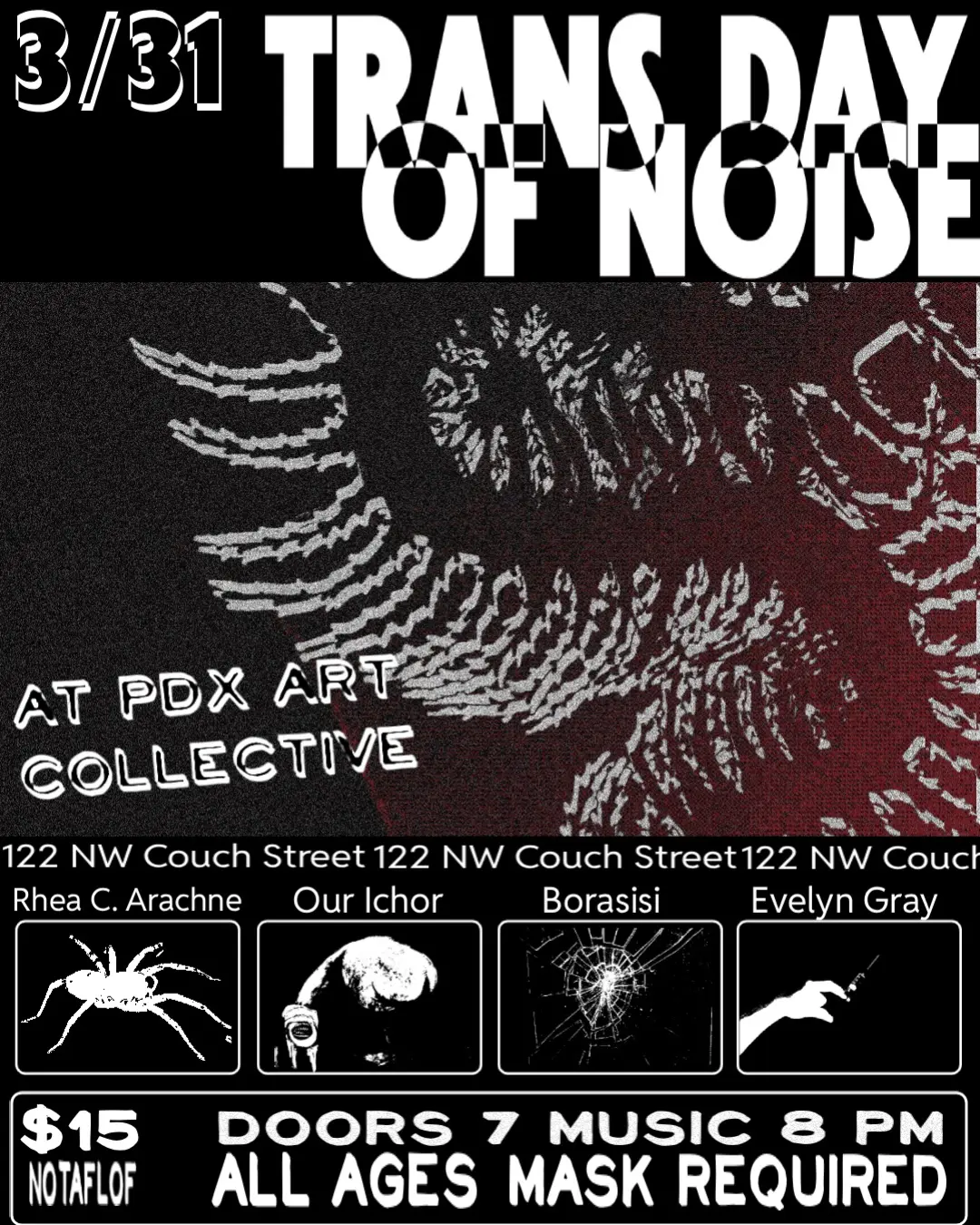 03/31 Trans Day Of Noise - Rhea C Archane, Our Ichor, Borasisi, Evelyn Gray - PDX Arts Collective - All Ages, 7:00pm, $15