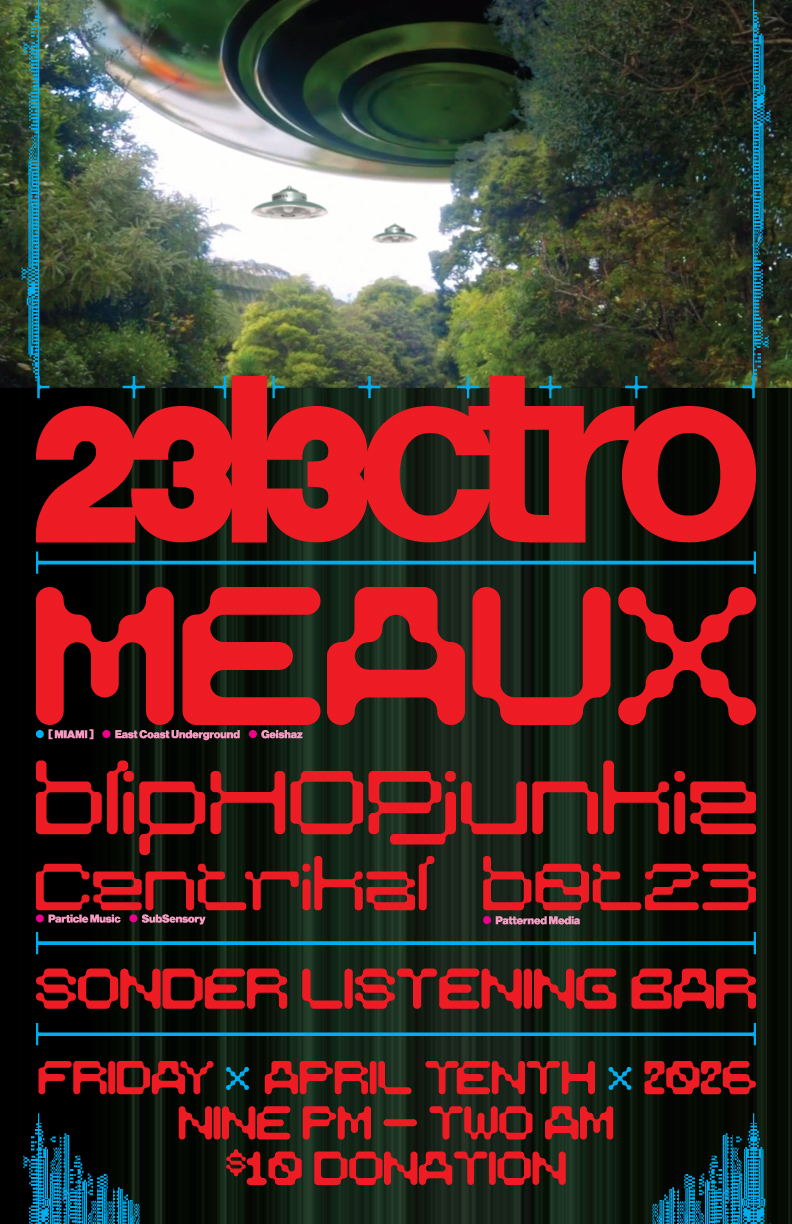 04/10 23l3ctro - Meaux, bliphopjunkie, centrikal, bot23 - Sonder Listening Bar - 21+, 9:00pm, $10 Donation