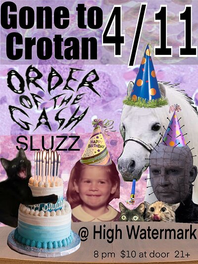 04/11 Gone to Crotan, Order of the Gash, Sluzz - High Water Mark - 21+, 8:30pm, $10/