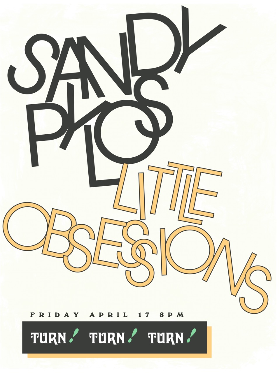 04/17 Sandy Pylos, Little Obsessions - Turn! Turn! Turn! - 21+ Ages, 8:00pm, $10