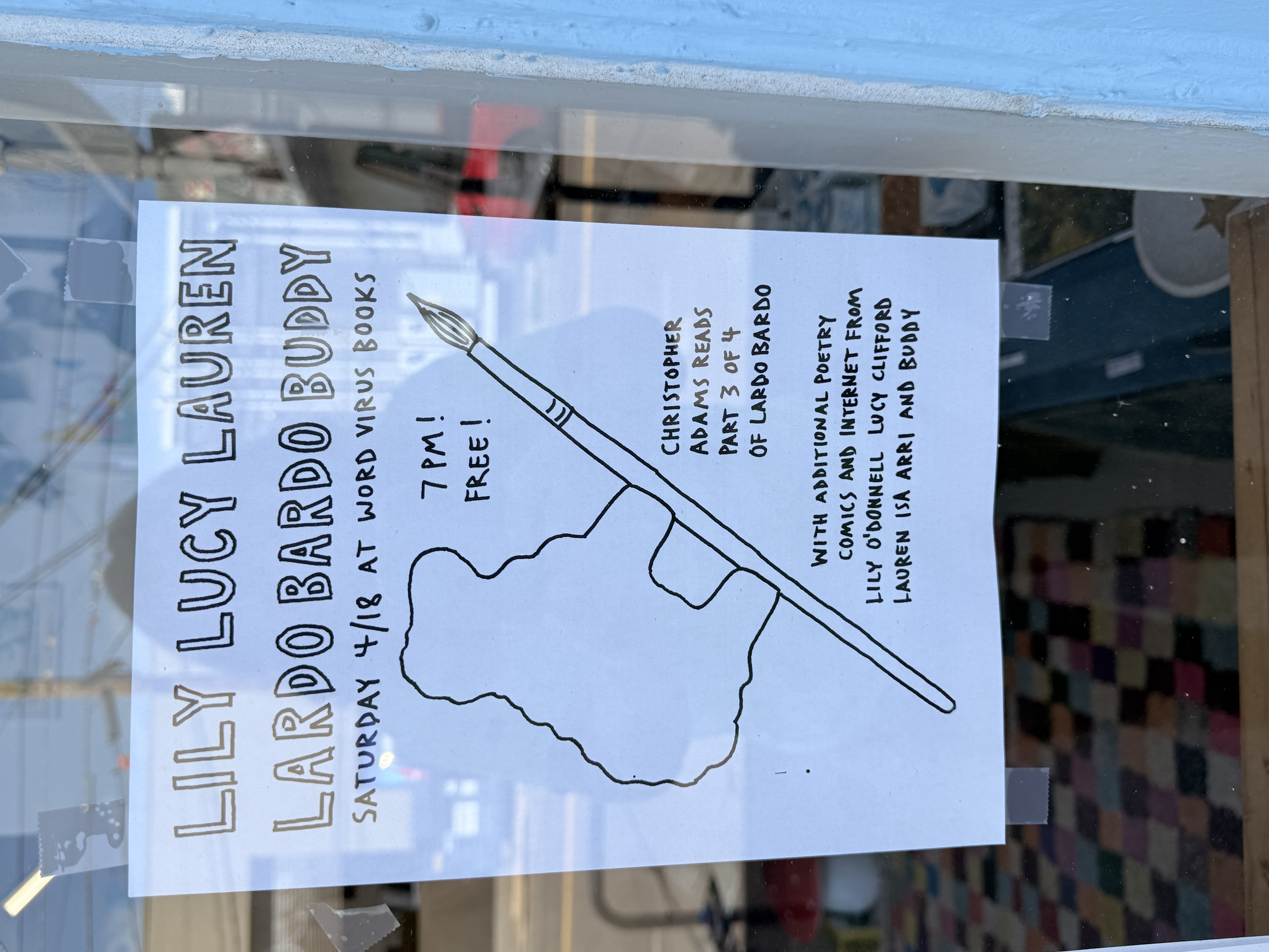 04/18 Lily Lucy Lauren Lardo Bardo Buddy - Word Virus Books - All Ages, 7:00pm, Free