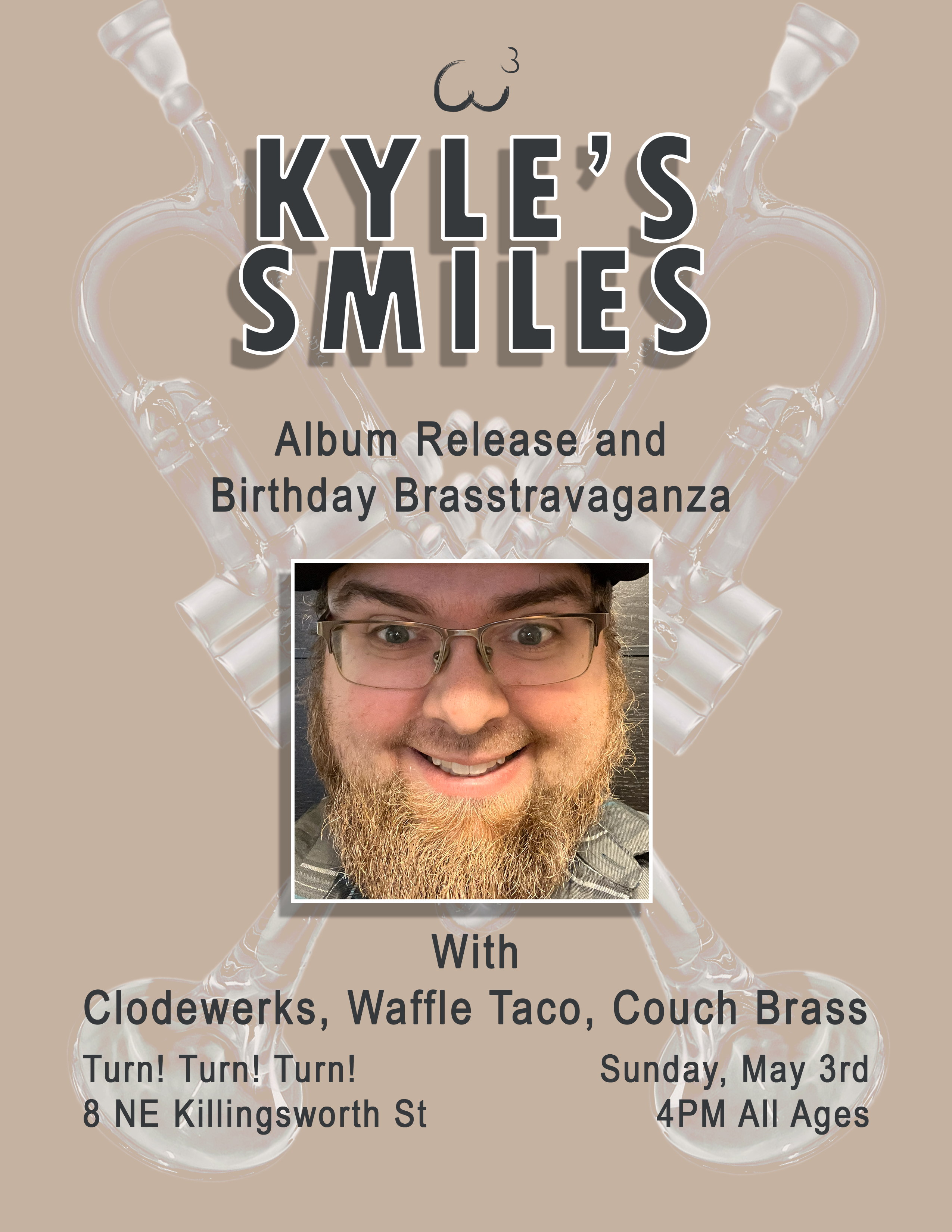 05/03 Kyle's Smiles, Clodewerks, Waffle Taco, Couch Brass - Turn! Turn! Turn! - All Ages, 4:00pm, $10