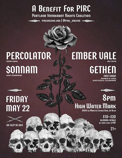 05/22 Benefit for PIRC - Percolator, Sonnam, Ember Vale, Gethen - High Water Mark - 21+, 8:00pm, $10-$20 Sliding Scale