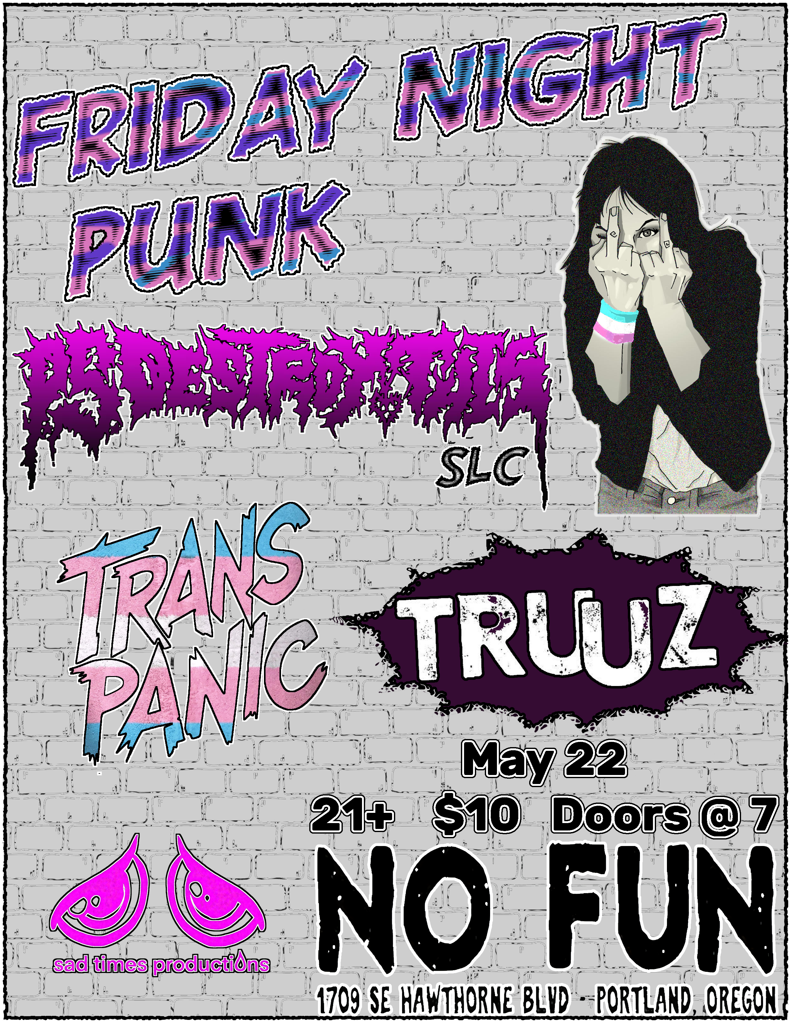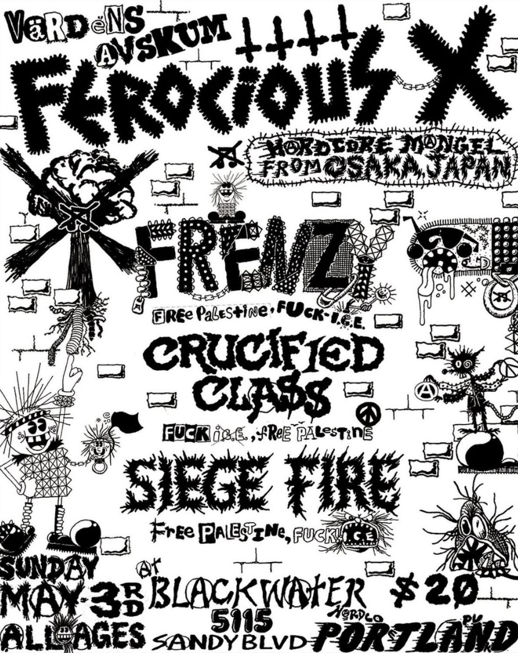 Please submit all JPGs, PNGs or BMPs (IMAGE FILES ONLY please and only pics of flyers please) along with a SHORT text description (band names, time, date, ages, cost) for events to shows@flyerescape.dad