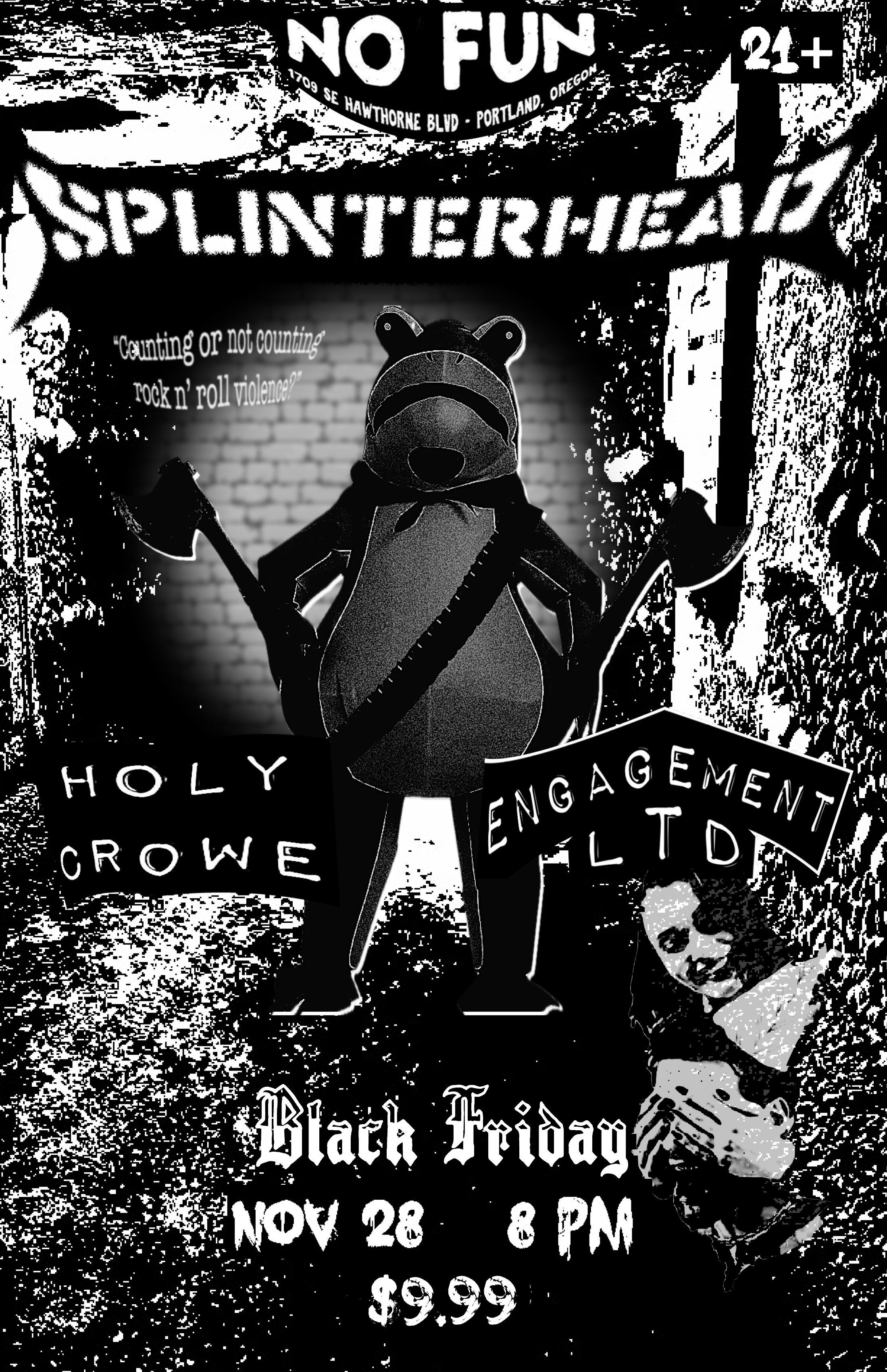 11/28 Splinterhead, Holy Crowe, Engagement LTD - No Fun - 21+, 8:00pm, $10