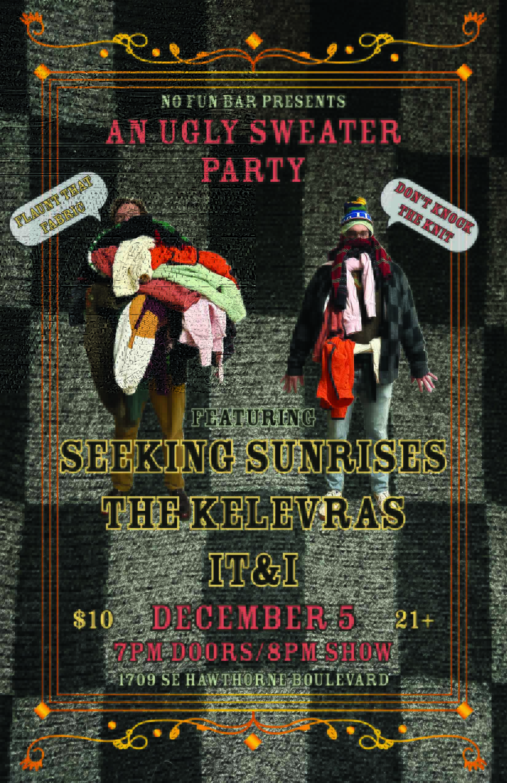 12/05 Ugly Sweater Party! Seeking Sunrises, The Kelevras, It & I - No Fun - 21+, 8:00pm, $10
