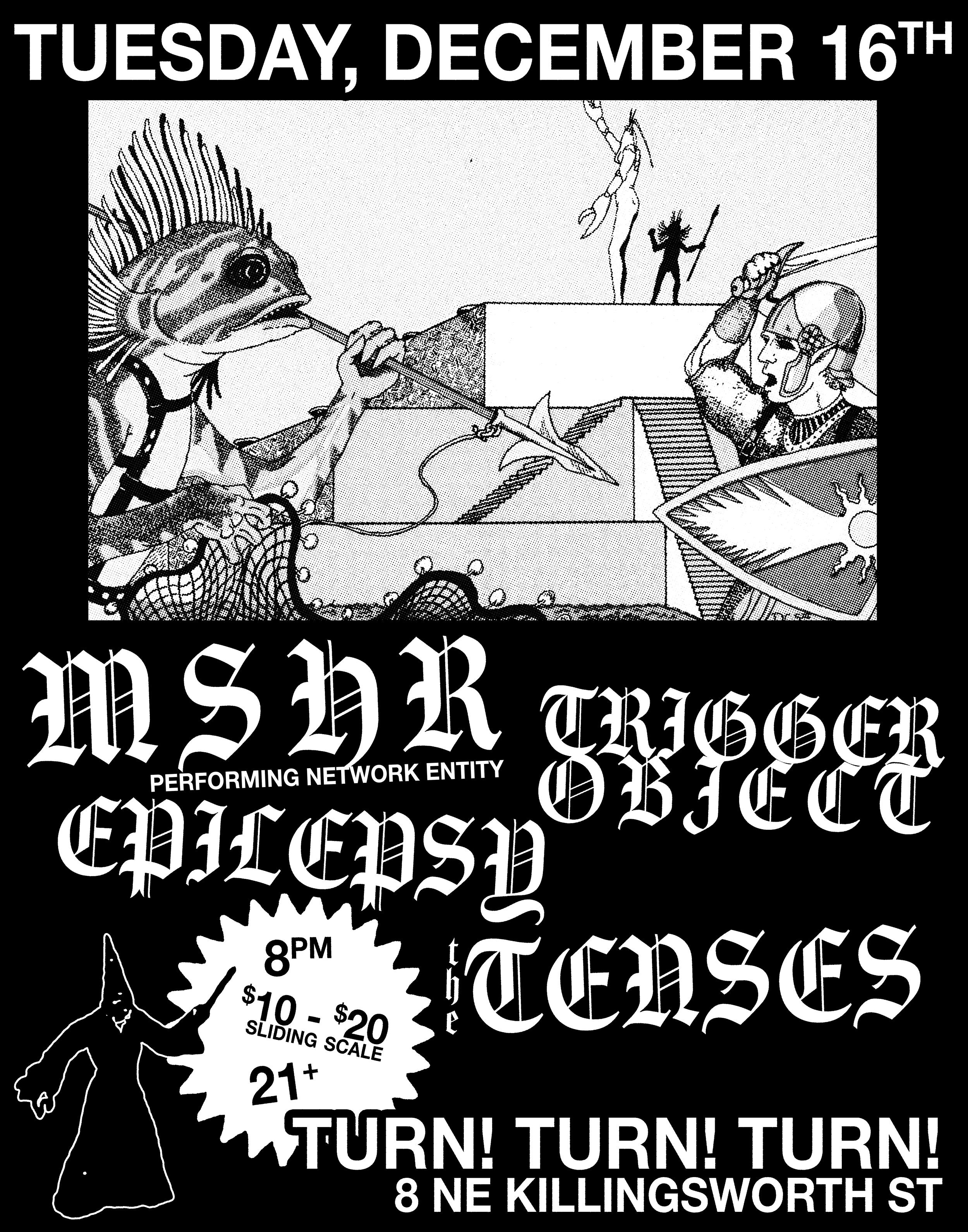 12/16 MSHR, Trigger Object, Epilepsy, The Tenses - Turn! Turn! Turn! - 21+, 8:00pm, $10-$20 Sliding Scale