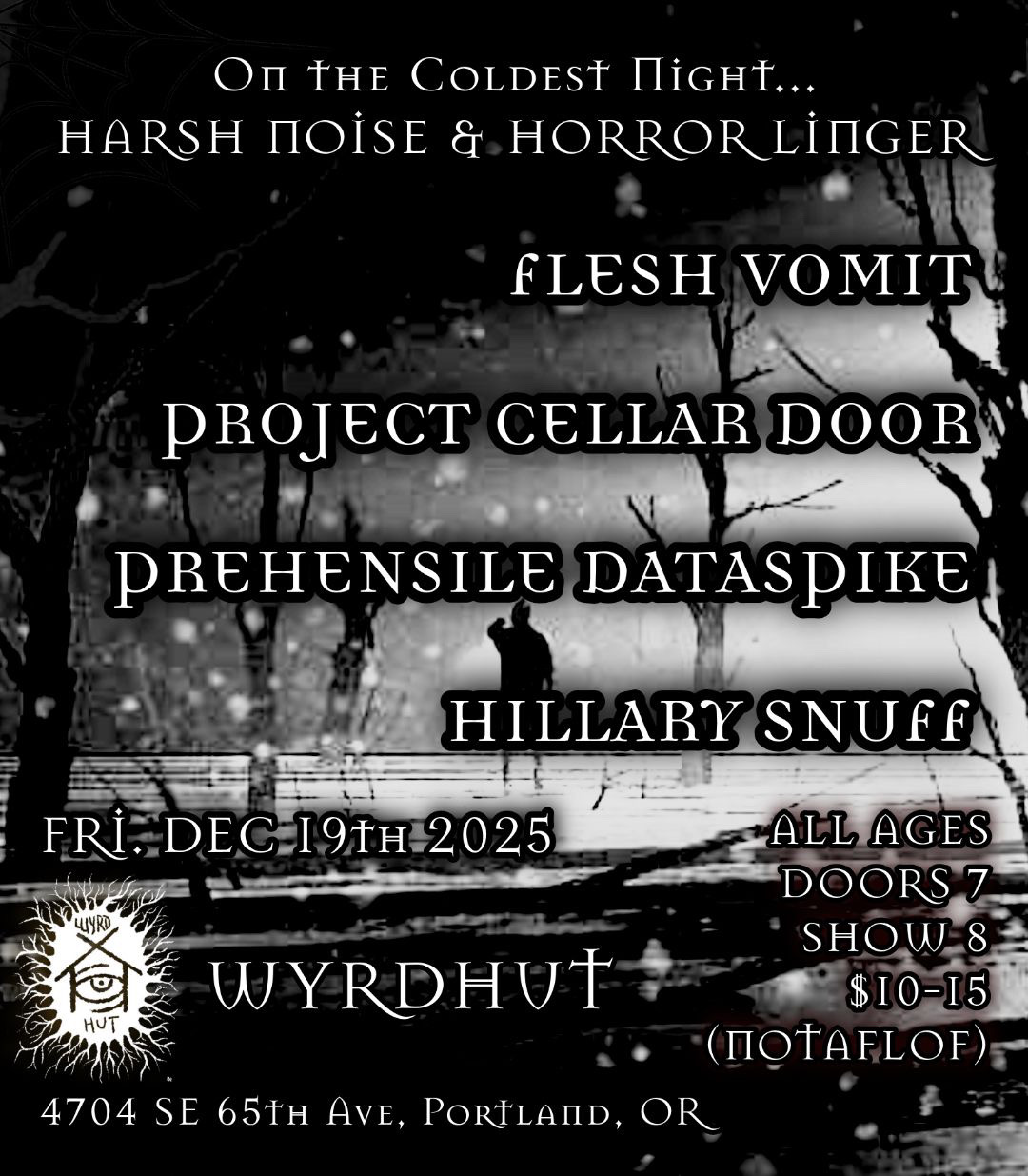 12/19 Flesh Vomit, Projecect Cellar Door, Prehensile Dataspike, Hillary Snuff - Wyrd Hut - All Ages, 7:00pm, $10-$15 NOTAFLOF