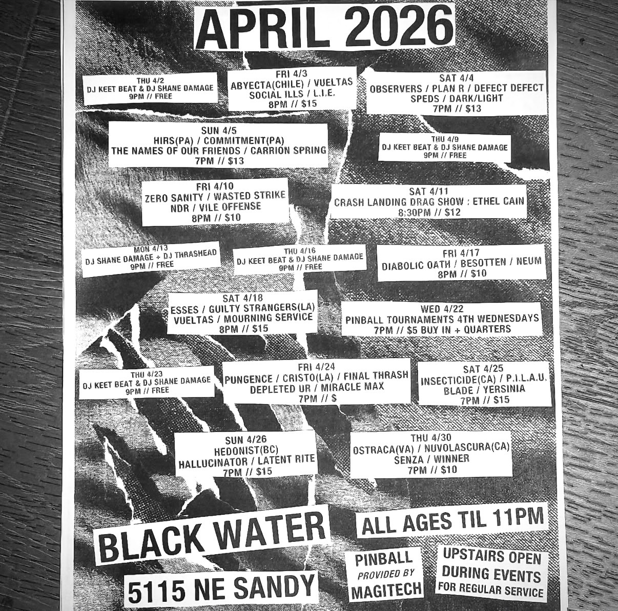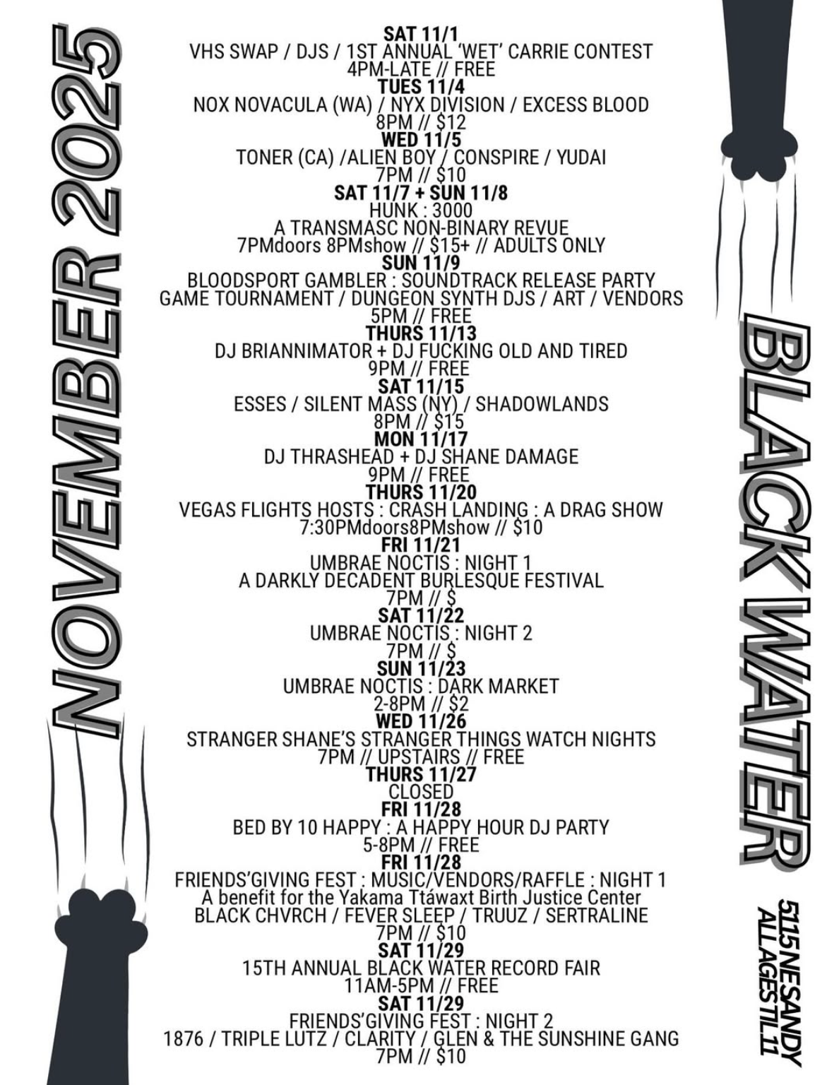 Please submit all JPG IMAGES (and only flyer images) along with a SHORT text description (band names, time, date, ages, cost) for events to shows@flyerescape.dad