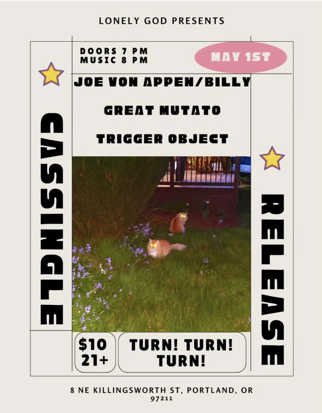 05/01 Joe Von Appen, Billy, Great Mutato, Trigger Object - Turn! Turn! Turn! - 21+, 8:00pm, $10